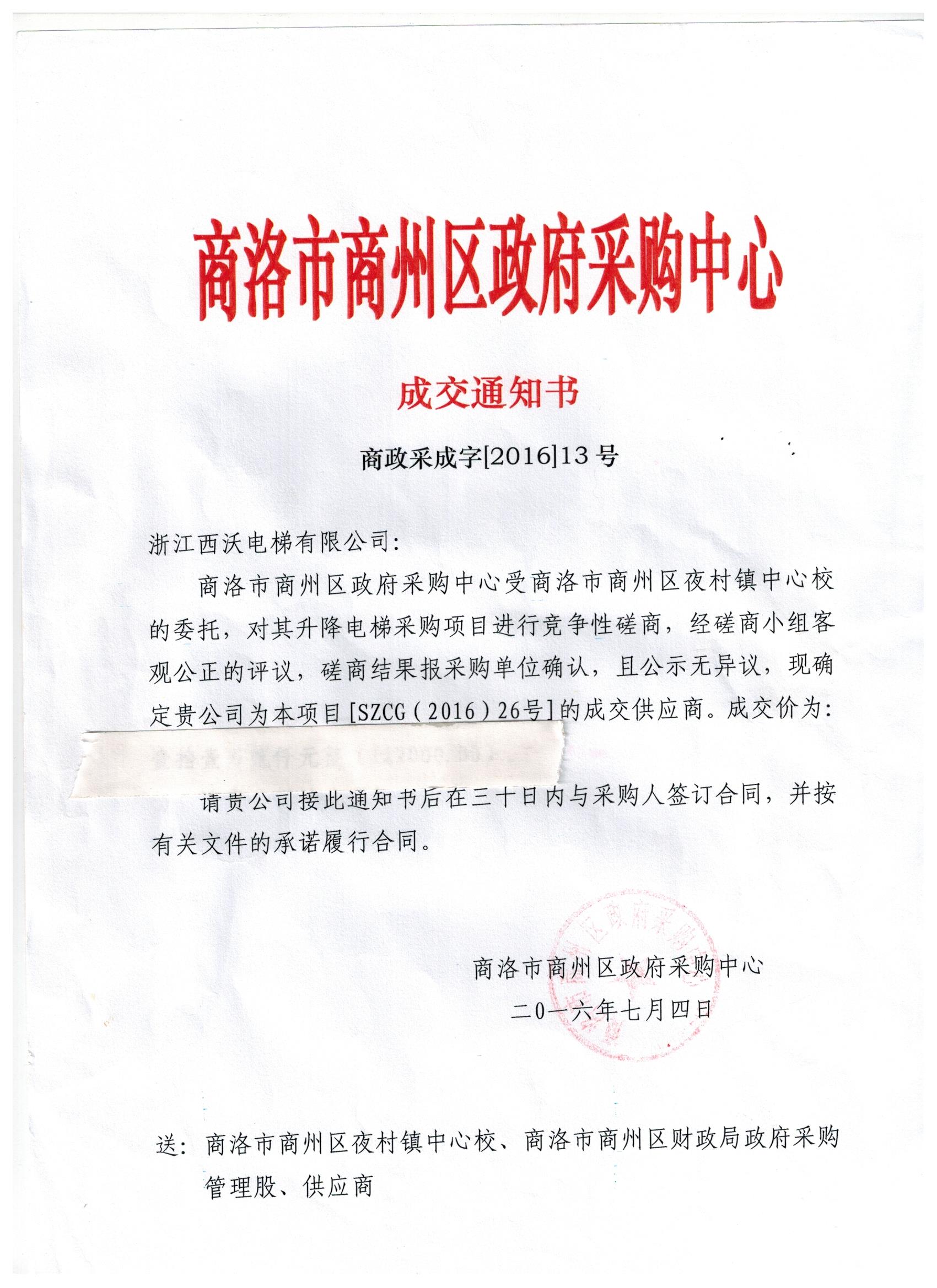 商洛市商州區(qū)夜村鎮(zhèn)中心幼兒園電梯中標