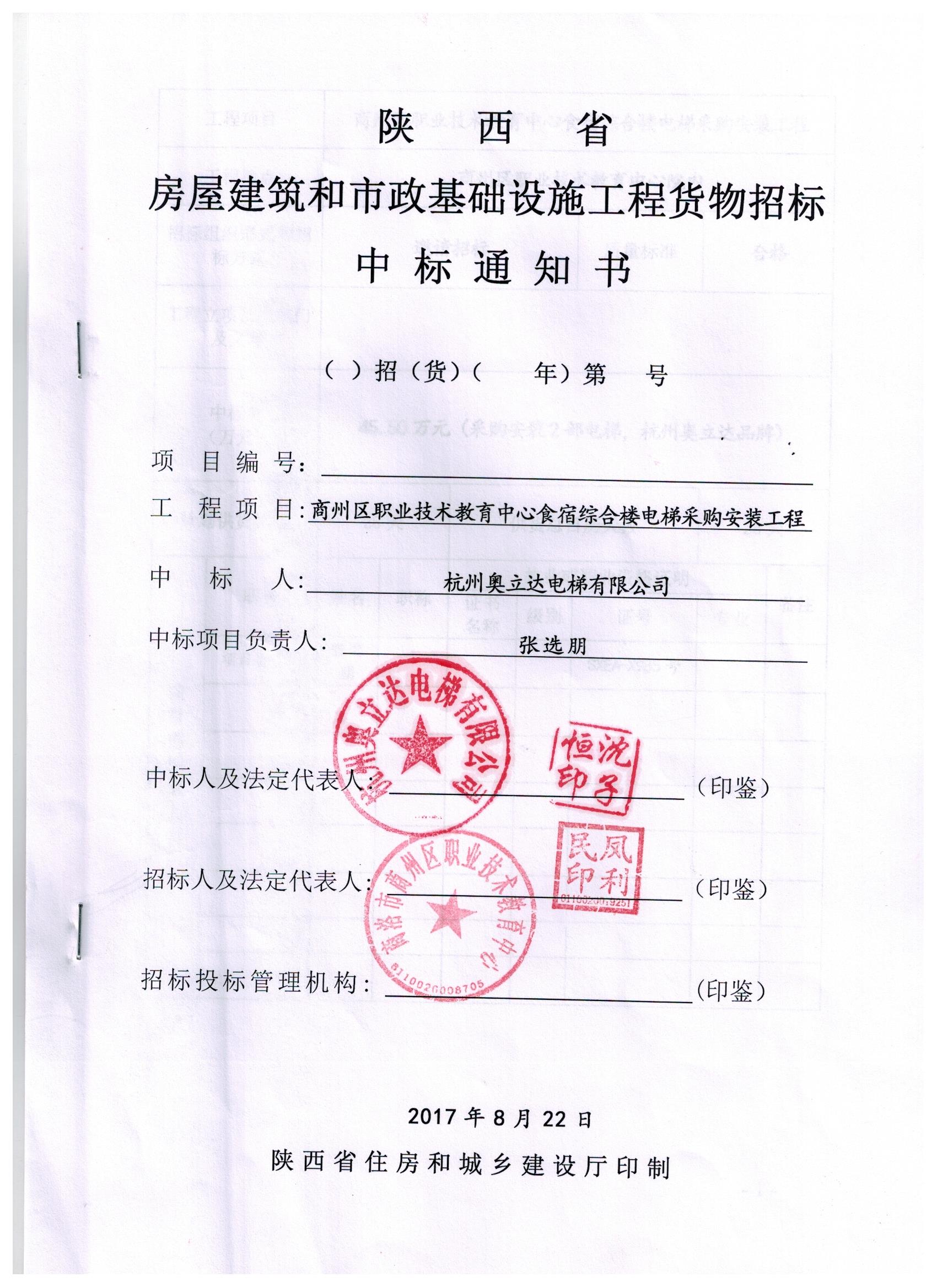 商洛市商州區(qū)職業(yè)技術(shù)教育中心電梯招標結(jié)果